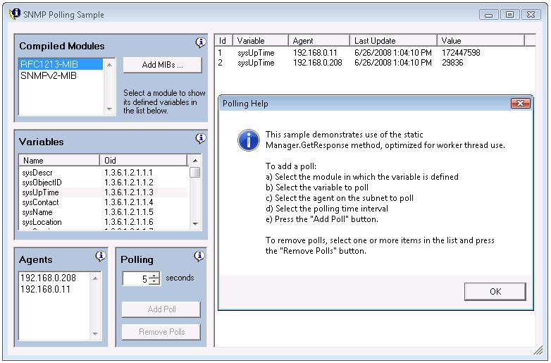 推薦使用工具PowerSNMP。它把經過編碼的SNMP自陷,請求和響應轉換為一個您可以在您的開發環境中輕松操作的對象模型。使用PowerSNMP來創建自定義自陷句柄,管理站以及代理。