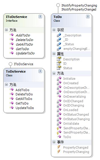 現(xiàn)在,添加一個(gè)LINQ到SQL類文件從項(xiàng)目模板。拖放的TODO表從數(shù)據(jù)庫的LINQ到SQL類文件設(shè)計(jì)。現(xiàn)在,請(qǐng)點(diǎn)擊設(shè)計(jì)器到屬性窗口中,改變單向序列模式。現(xiàn)在,我們的設(shè)計(jì)器生成的LINQ到SQL類是準(zhǔn)備用于WCF。如果您想使用自定義用戶定義的類型,您必須設(shè)置[DataContract]層次屬性到您的類,還必須添加[DataMember]特殊屬性。 現(xiàn)在,我們要添加這樣的一個(gè)服務(wù)接口: