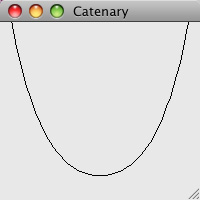 實際上,cosh(z) 的結果相當于一根吊繩兩端相連后得到的形狀,即懸鏈線。清單 5 是一個簡單的程序,它使用 Math.cosh 函數繪制一條懸鏈線: