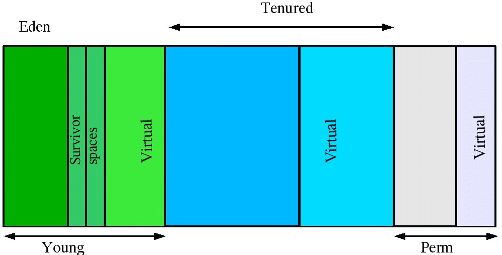 而另一部分內存在JVM啟動時就分配給JVM,作為JVM的初始Heap內存使用。影響這個的參數是 -Xms ,如果 -Xms 指定的值比-Xmx 的小,那么兩者的差值就是Virtual內存值。隨著程序的運行,Eden區、 Tenured區和Perm區會逐漸使用保留的Virtual空間。