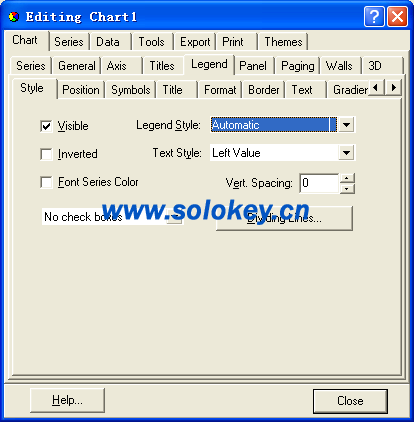 Legend Style:Legend的顯示內容,Automatic(自動),Series Names(名稱,確切的說其實是Series的Title),Series Values(數據),Last Values(最后一個點的數據,所有的Series),Series Groups(沒用過...).