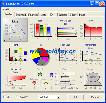 TeeChart提供了很多類型不同的Series,下面是比較常用的.