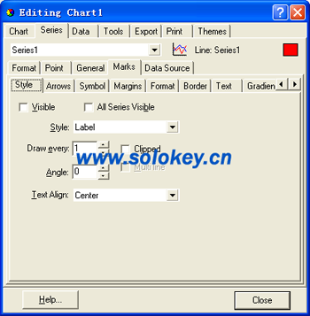 Marks,標記,用于顯示添加數據這些函數中的ALabel參數,或者其他的Style.如下: