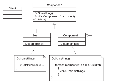 看到上面圖,其實(shí)大家也可以想想在ASP.NET頁面的生命周期中到處都是這種例子:例如在ASP.NET頁面的Init事件中,因?yàn)镻age本身就是一個(gè)容器,這個(gè)容器里面包含了很多的其他的控件,如Panel,Button,而且Panel里面還是控件。那么在Init方法就會(huì)調(diào)用自己的子容器的Init方法,然后子容器在調(diào)用自己的子容器的Init方法,這樣就層層調(diào)用,直到最后調(diào)用到某個(gè)控件的Init的方法。這樣這個(gè)頁面的初始化就完成了。和上面的UML的結(jié)構(gòu)是一樣的。