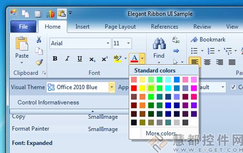概述:Elegant Ribbon 是一套Windows窗體控件,它可以讓你簡單快捷的為你的應用程序提供一個像 Microsoft Office 2007 中所介紹的新一代用戶接口。近日,FOSS 公司宣布Windows窗體控件Elegant Ribbon 正式發布v3.8 beta ,新功能包括新增滾動性容器和改進導航欄,增加下拉式顏色選擇器以及顏色選擇對話框等等。