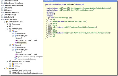 前幾篇介紹了一些基礎知識,那么這篇也簡單的回顧一下,下面第一幅圖是WPF的執行順序,第二副圖是WPF的一個項目的構成,第三幅圖是WPF所對應的IL代碼(這些圖處理得不好,還望各位見諒)。