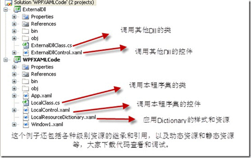 這個部分要講的東西就太多了,由于這篇文章篇幅有限,同時我覺得用代碼詮釋能讓大家可以更清晰地理解,所以就講得隨意一些,通過一個Demo介紹WPF對資源、類、控件的調用和處理,對Dictionary資源、Application資源、window資源以及控件資源的應用等,如下圖所示(本篇所有代碼在評論的第一條):