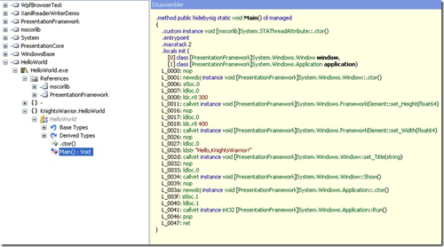 如果對MSIL比較熟悉的朋友,也可以用記事本寫同樣功能的IL代碼,由于沒有對WPF窗體的IL做具體研究,所以用Console程序代替,等過一段時間再研究WPF控件的IL代碼.
