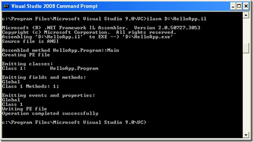 然后打開 Visual Studio Command Prompt,使用 ILASM 開始編譯,