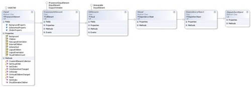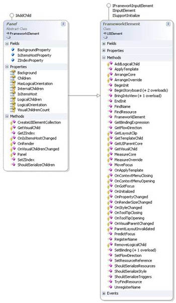 于今天只是講如何開發(fā)一個(gè)自定義的Panel,所以在清楚了基類的前提下,首先得了解它有哪些屬性和事件,這樣就可以確定哪些是不需要單獨(dú)寫、哪些是需要override。下圖就是Panel和基類FrameworkElement 的類圖: