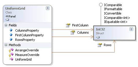 在清楚了上面這張圖以后,我們就可以著手開始寫了,我們知道布局系統(tǒng)的工作原理是先測量后排列,測量就是確定面板需要多大空間,排列則是定義其面板內(nèi)子元素的排列規(guī)則。自定義面板要繼承自Panel類并重寫MeasureOverride和rrangeOverride方法即可,如下便是一個(gè)簡單的自定義Panel: