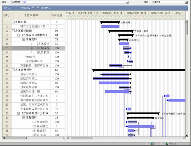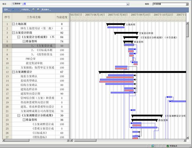 控件產品給明源項目進度管理系統的開發帶來的好處主要有兩個方面:一是計劃編制過程中的計劃排程及計劃的圖形展示,二是計劃執行過程中的計劃執行情況對比分析圖形展示。