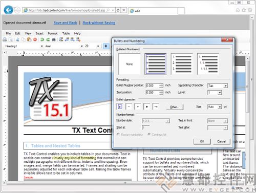 使用TextControl,可以構建與Windows 窗體功能相同的基于瀏覽器的應用程序,這包括加載和保存文件至所支持文件格式的客戶機。有了TX Text Control .NET v16.0你可以建立 一個完整的Internet Explorer文字處理應用程序。