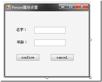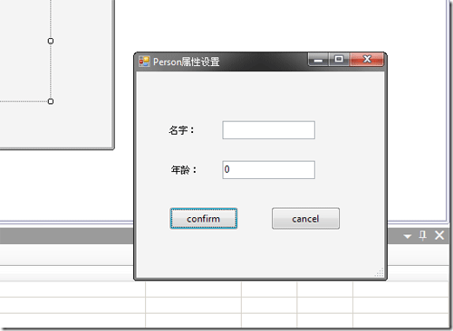 首先我們新建一個窗體,這個窗體就是將來需要顯示給用戶設置屬性的(比如上圖的"選擇資源"窗體)。我們還是以person類為例: