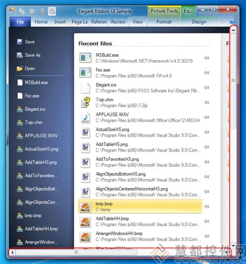 目前,Elegant Ribbon 控件已經(jīng)正式發(fā)布v3.8,新版本提供了許多新特征,例如,導(dǎo)航欄, 面板 和BackstageView 控件現(xiàn)支持滾動(dòng)功能,新增三個(gè)Office 2010主題和多款新控件,改進(jìn)導(dǎo)航功能等等,更能夠滿足用戶的要求。
