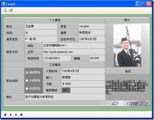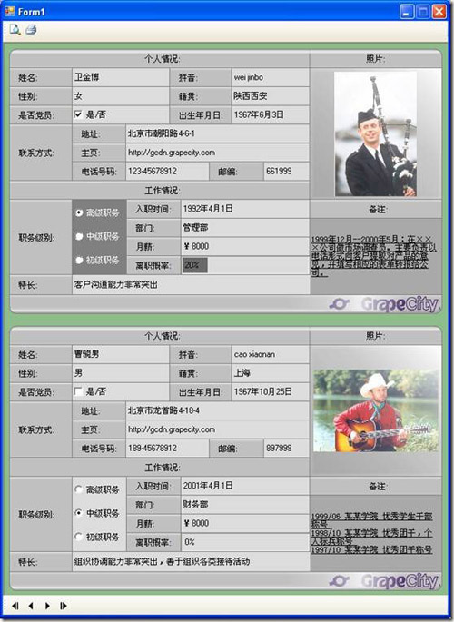 MultiRow也提供了打印功能,以及各種打印模式和設置,下面是使用SingleRow打印模式,保證每頁只打印一條記錄,打印預覽效果如下所示: