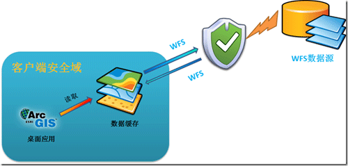 圖2 ArcGIS與WFS交互的體系結構圖