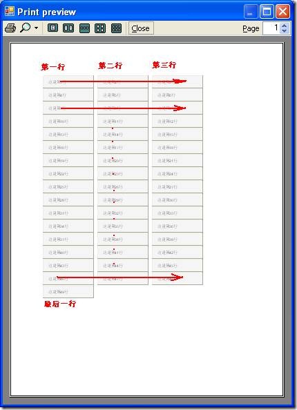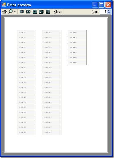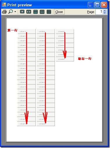 另外,上面的MultiColumns模式下,你還可以選擇所有Row的安排方式是依次從上到下,還是從左到右排列的。這個屬性是MultiColumnsPrintOrder,默認為DownThenOver,也就是從上到下排列,一列打印滿之后再從下一列繼續(xù)打印。如果改成OverThenDown,上圖的效果就成這樣子了: