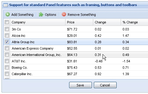 支持擴展行、折疊、內容自適應、CheckBox封裝、滾動條,以及各種按鈕和工具欄,可以說ExtJs的Grid非常之強大(多謝 Lucian Lature了!).