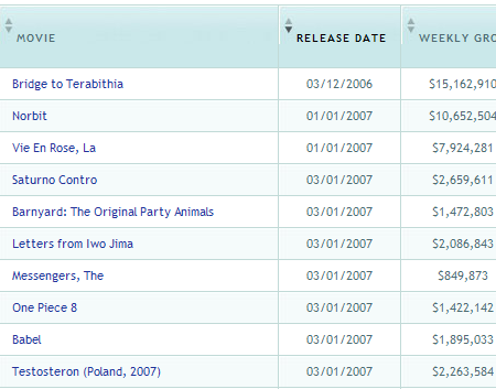 又是一個基于Prototype 框架的杰作。可以對列進行排序,一些選取的行和單元格可以高亮標注,還提供了 tutorial related to table sorting ith Prototype 。