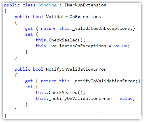 ValidatesOnExceptions:告訴綁定引擎當有異常發生時創建一個驗證異常