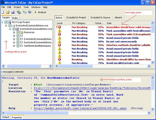 概述:本文詳細(xì)介紹了FxCop的使用過程,并通過一個(gè)示例來進(jìn)行說明。FxCop是對(duì)中間語言進(jìn)行檢測(cè)的,所以這里的代碼同樣適用于C#。