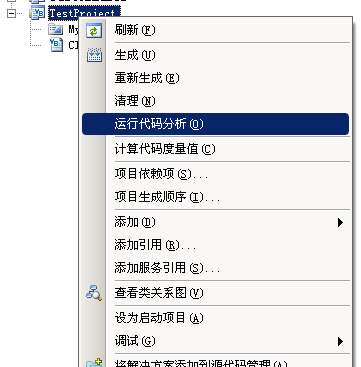 2、與vs2008集成,將這個(gè)dll放置到:VS2008安裝路徑\Microsoft Visual Studio 9.0\Team Tools\Static Analysis Tools\FxCop\Rules\目錄下。選擇一個(gè)項(xiàng)目,鼠標(biāo)右鍵點(diǎn)擊“運(yùn)行代碼分析”。