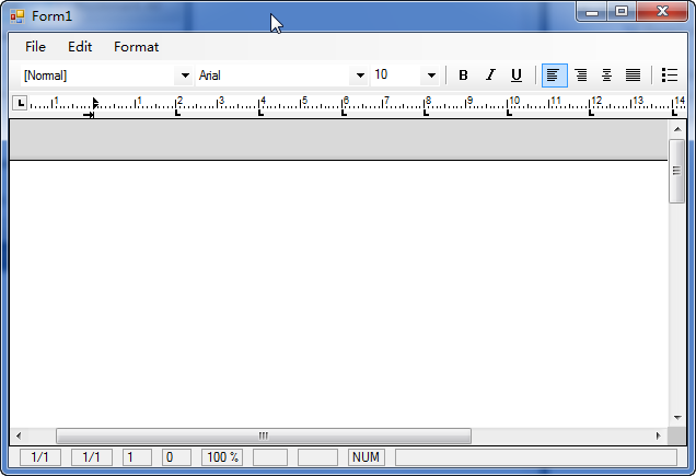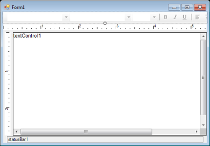 在工具相中選擇【ButtonBar】并將其拖拽到窗體中,然后用同樣方法添加一個【StatusBar】、兩個【RulerBar】和一個【TextControl】控件到窗體上。添加控件之后分別設置它們的【Dock】屬性,最終得到以下結果。