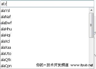 這是我最喜歡的一個ASP.NET TextBox控件的擴展控件,當用戶在文本框中輸入字符時,它以下拉列表形式顯示所有有效的值讓用戶選擇,被選中的值自動填充到TextBox控件中,這個控件在很多ASP.NET應用程序中都得到了應用,圖1顯示了一個簡單的示例。