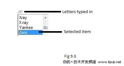 這個擴展可以是一個列表框控件,也可以是一個下拉列表控件,用戶輸入字母就可以搜索列表框或下拉列表中的內容,圖9顯示了一個簡單的列表搜索擴展示例。