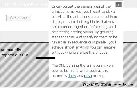 圖2顯示了一個DIV標簽中目標控件被點擊時的示例動畫效果。