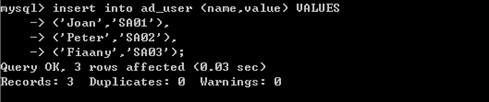 從語言編寫的角度看,第一種方式比較清楚明了。但是從數據插入速度的角度來看,第二種方式性能比較好。特別是一次性插入一兩百條記錄時,兩者所需要的時間會相差一倍以上。如下圖所示,就是使用一條Insert語句插入多條記錄的舉例。