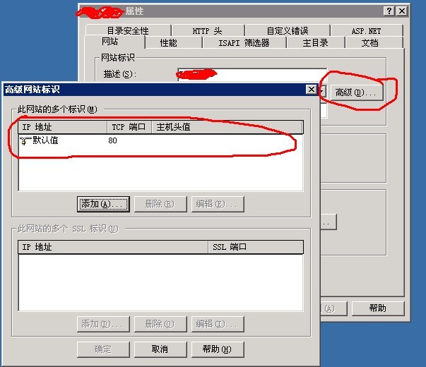 (1)網站必須為Web服務器的默認站點,即端口號為80,主機頭為空的站點。如下圖所示。