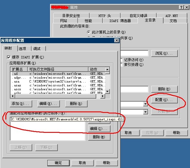在這里的設置,是讓該站點接到的所有請求都交給aspnet_isapi.dll處理。