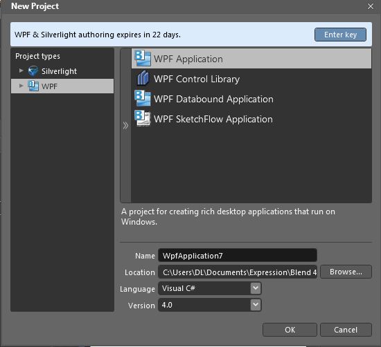 File——New Project,跳出如下窗口,選擇WPF——WPFApplication—點擊OK