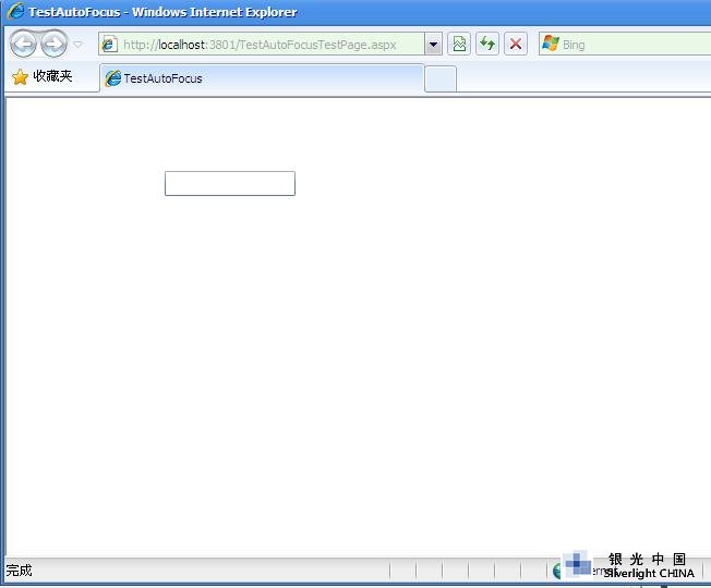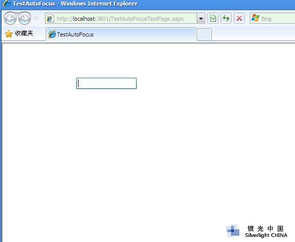 好了這樣我們就發現成功聚焦了,結論是:要想聚焦到silverlight中的控件一定要先聚焦到silverlight這個插件上,我們可以通過鼠標點擊到silverlight上使其聚焦.但當我們一開始沒有點擊就想使其中的控件獲得焦點可能就要用到我這個方法了.希望能給大家幫助.