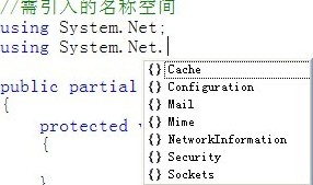System.Net下還有很多空間,只是打出來(lái)讓新手們有個(gè)更強(qiáng)烈的認(rèn)識(shí),本例中只用到NET這個(gè)對(duì)大的名稱空間,其他的就不做解釋了。