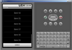 筆者之前也是弄的不明白,用的時候直接在網上找代碼,復制粘貼,再修改一下就是自己的了,筆者的這個小Demo靈感來自于新浪或者騰訊微博手機客戶端,比如第一頁加載十條Item,當翻到最后一個Item的時候,會出來一個Button,當點擊Button的時候就會繼續加載更多的,當然如果不點,就不會加載的,節約用戶流量,先看效果圖