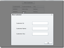 程序運行后當用戶單擊 New Customer 按鈕時,就會彈出一個子窗體,用戶輸入Customer Id、Customer Name、Customer City 后單擊 OK 按鈕就會在主頁面的客戶列表中顯示出剛才輸入的客戶信息。下面是本示例具體的實現(xiàn)。
