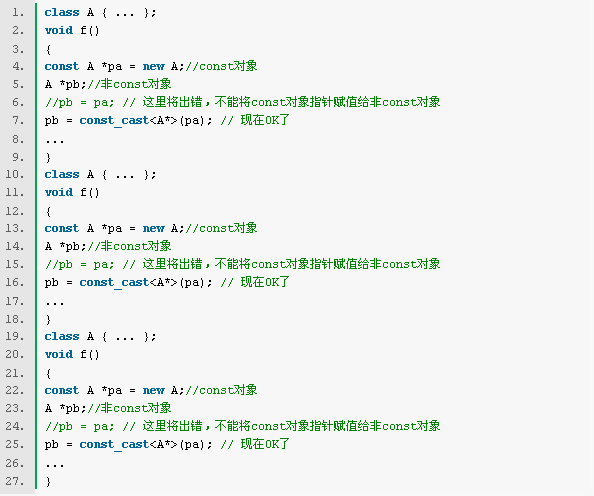 表達式const_cast<T*>(a)被用于從一個類中去除以下這些屬性:const, volatile, 和 __unaligned.