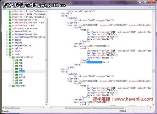 首先用office【版本要2003以上,以下的不支持xml格式】編輯文檔的樣式,圖中紅線的部分就是我要輸出的部分: