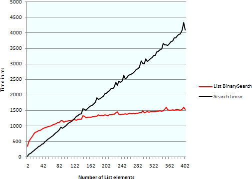 在針對一個較大的集合進行搜索時,binary搜索比linear搜索的效率要高很多,對于元素個數小于100的集合,BinarySearch較慢,可能是執行時的資源消耗導致的。