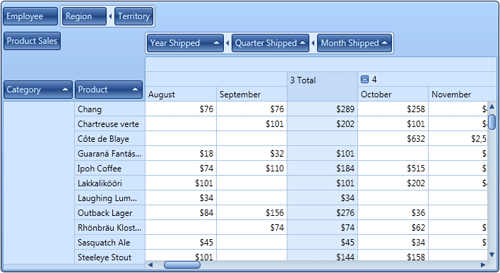 下面的截圖中,你可以看見帶有水平和垂直滾動條的默認(rèn)的DXPivotGrid視圖。