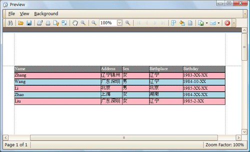 運行時顯示一個數(shù)據(jù)表格中的數(shù)據(jù) 交替換表格的顏色。