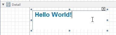2、雙擊所創(chuàng)建的標簽,調(diào)用它的允許輸入文本的 內(nèi)置編輯器。 例如,鍵入經(jīng)典的 Hello World! 語句。 然后使用 XtraReports 工具欄 來調(diào)整標簽的顏色及字體選項。
