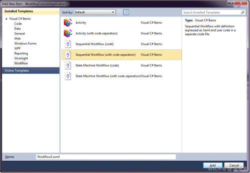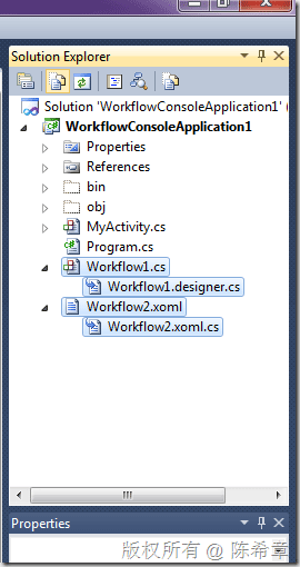 這里要介紹的是一種純XOML的方式:我們能不能全部用XOML來實現對流程的定義?如果這樣的話,我們就可以實現更加動態化的流程,因為如果存在額外的代碼,就無需編譯,而是可以通過直接修改XOML文件就完成流程的修改。