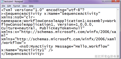 代碼執行完成之后,生成的那個test.xoml的內容如下