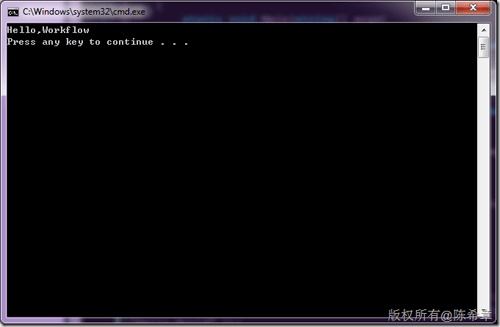 如果我們需要修改流程定義,則直接可以修改那個XOML文件,而無需編譯程序。例如我們將Message修改為“Hello,Workflow”