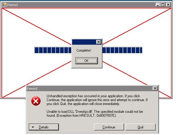 有了這個功能強大的托管類庫的支持,可以非常方便地調用Windows7的API來實現那些非常酷的效果。不過這里 有一個小問題需要解決,當你在你的應用程序中使用了這個類庫并且在Windows7下實現了想要的效果,如果用戶運行的Windows環境是XP或 2003,那么你的程序會拋出異常,類似于下面的截圖。