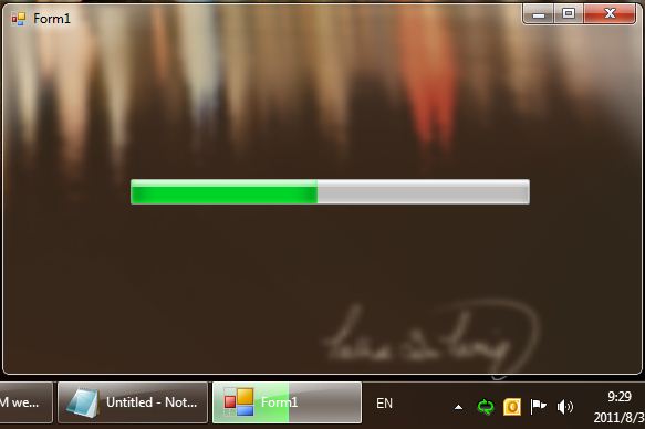 下面是我用這些類庫實現的一個效果,包含了窗體透明玻璃磨砂效果以及任務欄進度條顯示。
